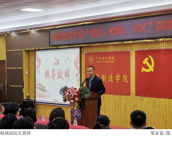 最后,由评委确定普法演讲比赛获奖名单。一等奖:6号梁海泓,二等奖:8号黄铸,4号张惪盛,三等奖:2号余凤婷,5号何展鹏,9号陈梓祺,优秀奖:3号谭健鑫,10号殷茁力,7号严要友,1号潘嘉敏。还颁发了优秀黑板报奖,公布了文明宿舍评比结果和优秀舍长获奖名单。比赛结束后,党总支苏庚华副书记在总结中指出依法治国是建设社会主义的重要基石,希望同学们能够在生活中守好道德和法律的底线,在学习中砥砺奋进。